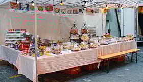 An unserem Marktstand in Bern verkaufen wir samstags neben «Patisserie Artisanale» wie Baklawa, Tarte de la crème oder Gazellenhörner auch Dattel-, Orangen- und Zitronenkuchen aus hauseigener Produktion. Unser Stand findet sich in der Münstergasse auf der linken Seite.